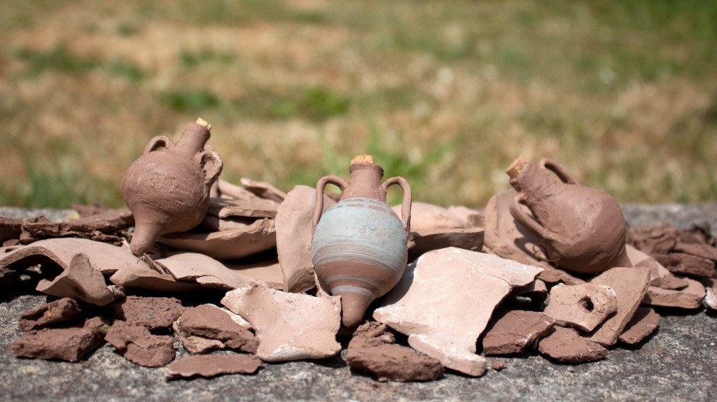 Turning my focus to how pots could be destroyed led me to the idea for Amphora, vessels encased in a vessel designed to be smashed, looking at the historical use of clay and its value as a disposable today.